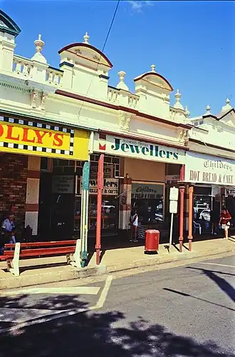 Gorrie occupied one of his shops himself as a baker and confectioner. This shop was occupied by hairdresser and barber William Lloyd, whose premises had been destroyed in the fire. The shop was leased to another hairdresser in 1930 and then to other commercial tenants. In 1941 Gorrie died and the property passed to Edward Gorrie who sold it to William and Annie McKay in 1958. It was purchased in 1976 by Earle and June Robinson who subdivided the property so that each shop was on a separate title. It was used for many years as a newsagency, although it is currently a jewellers.[1][2]