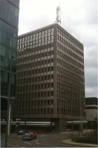 Lloyd House was originally constructed between 1960 and 1964 in Birmingham, England, for the steel company Stewarts & Lloyds.[4][5] The architects were Kelly and Surman.[6] The 13-storey building has roof height of 48.7 metres.[6] Its L-shaped floorplan is 70×30m on its largest sides.[6]
