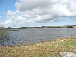 Llyn Traffwll is a 91 acre natural lake located, in Anglesey, Wales. Located midway between the villages of Rhosneigr and Valley it lies less than a kilometre south of the A55 North Wales Expressway. It is one of the largest natural lake on the island with Llyn Alaw and Llyn Cefni both being reservoirs.[1] Along with the surrounding smaller lakes it is a Site of Special Scientific Interest[2] and is adjacent to the Valley Wetlands RSPB site. Formerly (starting in 1866) the lake was used to supply water to Holyhead by the Holyhead Water Company,[3] and to aid water management a small dam was built which still exists.[4]