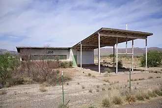 In 1882, the area became a watering stop and depot for the Southern Pacific Railroad. A post office was established in 1907 under the name Lobo, after the Mexican wolves (Canis lupus baileyi) that formerly roamed the area.[4] Two years later, a town site was laid out. With the creation of Culberson County in 1911, Lobo vied unsuccessfully with nearby Van Horn to become the new county's seat of government.[3] By 1915, the community had a population around 20 with a general store and several other businesses. A 1929 earthquake destroyed Lobo's hotel.[5] Another powerful earthquake struck the community in 1931.[2] By the mid-1930s, the number of inhabitants had fallen to 10. The post office closed in 1942, but the arrival of the Texas Mica Company and two railroad houses caused a slight increase in the population.[4] Large-scale irrigation commenced in the late 1940s and in the following years, cotton became an important crop in the local economy. Anderson, Clayton and Company set up a gin in Lobo, but in 1962, the railroad stop shut down. The population approached 90 by the mid-1960s. Around that time, the water table dropped dramatically and the wells were unable to supply enough water for residents and businesses. The cost of keeping the irrigation pumps operational skyrocketed, and the cotton gin shut down.[6]