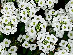Lobularia is a genus of five species of flowering plants in the family Brassicaceae, closely related to (and formerly often included in) the genus Alyssum. The genus is native to Macaronesia and the Mediterranean region, and comprises annuals and perennials growing to 10–40 cm (4–16 in) tall, with hairy oblong-oval leaves and clusters of cross-shaped (cruciform), fragrant white flowers.[1]