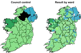Under the Local Government (Ireland) Act 1919, the electoral system for local elections in Ireland was changed to single transferable vote (STV) in multi-member districts. This had been used in the election to Sligo Corporation in 1919 (provided under separate local legislation),[14] and then for the 1920 Irish local elections.[15] After the partition of Ireland in 1920–22, the situation evolved differently in the Irish Free State (Ireland from 1937, Republic of Ireland from 1949) and Northern Ireland.