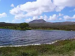 Overlooking the loch to the north is the imposing bulk of Canisp (Scottish Gaelic: Canasp) at 847 metres (2779 feet).[8]