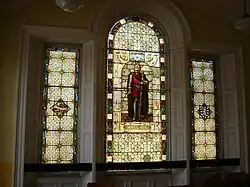 Further enhancements were made to a design by David Bryce and his nephew, John Bryce, and undertaken by a local contractor, William Ballantyne, in 1877.[5] These works included replacing the Venetian window with a niche flanked by tall windows with window cills and cornices, heightening the outer bays to two storeys, extending the building to the rear and adding a balustraded parapet at roof level.[2] Stained glass windows depicting William Wallace and Robert the Bruce were installed in the east and west windows of the council chamber respectively at this time.[4]