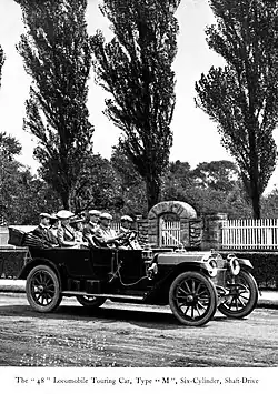 The Locomobile Company of America was a pioneering American automobile manufacturer founded in 1899, known for its dedication to precision before the assembly-line era.[1] It was one of the earliest car manufacturers in the advent of the automobile age. For the first two years after its founding, the company was located in Watertown, Massachusetts. Production was transferred to Bridgeport, Connecticut, in 1900, where it remained until the company's demise in 1929. The company manufactured affordable, small steam cars until 1903, when production switched entirely to internal combustion-powered luxury automobiles. Locomobile was taken over in 1922 by Durant Motors and eventually went out of business in 1929. All cars produced by the original company were always sold under the brand name Locomobile.