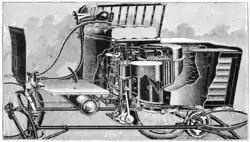 In 1901, Locomobile offered seven body styles at prices between $600 (equivalent to $22,678 in 2024) and $1,400 (equivalent to $52,914 in 2024). Most Locomobiles had simple twin-cylinder engines (3x4 in, 76.2x102 mm; 57 in3, 927 cm3) and a wire-wrapped 300-psi boiler, and burned the liquid fuel naphtha to create steam. Typical of the product was the 1904 Runabout, which seated two passengers and sold for $750[4]: 854 (equivalent to $26,247 in 2024). The two-cylinder steam engine was situated amidships of the wood-framed car. By now, the car had improved boilers and a new water pump, manufactured by the Overman Wheel Company in Chicopee Falls, Massachusetts. This company itself built the Victor Steamer.[4]: 1453