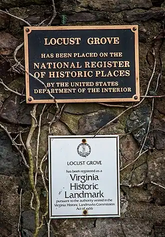 - ^ Virginia Department of Historic Resources (June 1985). "National Register of Historic Places Inventory/Nomination: Locust Grove" (PDF). Virginia Historic Landmarks Commission. and Accompanying photo