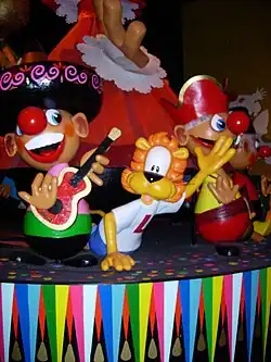 On 16 March 2005, Loeki was supposedly kidnapped by a student from Utrecht, because they did not want him to wither away in a dusty archive. It turned out to be a publicity stunt, when Loeki moved to the Efteling amusement park. After 2005, Loeki was used there to supplement the Carnival Festival.[4] This attraction was also designed in 1984 by Joop Geesink. Loeki was removed from Carnival Festival in 2012 and replaced by their original mascot, Jokie.