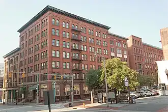 The Loft Historic District North is a national historic district in Baltimore, Maryland, United States. It includes 12 large 19th–early 20th century vertical brick manufacturing buildings centering on Paca, Redwood, and Eutaw Streets near the University of Maryland Campus in downtown Baltimore. Most of the buildings are still used for manufacturing purposes, although a few, including the Heiser, Rosenfeld, and Strauss buildings, have been converted into loft apartments or offices. They are representative of Romanesque, Victorian, and early modern industrial architectural design. It was in this area that Baltimore's garment industry grew to national importance.[2]