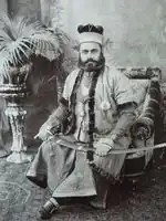 Alauddin Ahmed Khan succeeded his father Amin-ud-din Khan in 1869 and received the title of Nawab. Alauddin's son, Amir-ud-din Ahmad Khan (1859–1937), after managing the state on his father's behalf, succeeded him in 1884, though from 1893 to 1903, he remained administrator and adviser of the state of Maler Kotla – during this time, the state was being handled by his younger brother, Bashiruddin Ahmed Khan. In 1903, Amir- ud-din Ahmad Khan also received the K.C.S.I honour from the British Government and after the 1903 Durbar Honours from 1 January 1903 was allowed a 9 gun personal salute.[5][16] He later became a member of the Viceroy of India's legislative council.[3][17] The Nawab of Loharu State dealt with the dissenting kisans (farmers) and his troops opened fire on a Kisan Meeting on 8 August 1935, killing dozens of kisans.