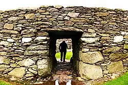 The entrance has a stone-lined passage similar to that at Staigue stone fort.[11][12]