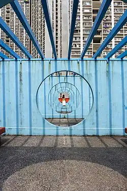 The Kung Lok Road Playground is a hard-surfaced open space intended for use by bicyclists, but also popular with joggers. It opened in 1988.[13] There is a bicycle rental kiosk, sitting-out areas, and a park office with public toilets.[14] The park is directly linked to Lok Wah Playground and from both parks one can quickly reach Ngau Tau Kok Road via a staircase that links to On Shin Road.