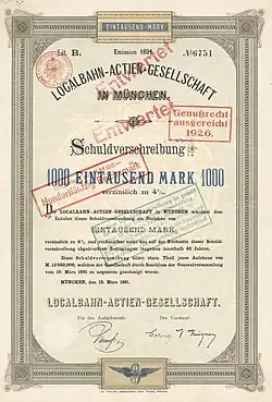 Apart from its own routes in southern Germany the company owned the majority of shares in the Lausitz Railway Company (Lausitzer Eisenbahn-Gesellschaft) and had a share in the Salzkammergut Lokalbahn AG and the Central Bank for Railway Stocks. The latter had, especially over the West Hungarian Lokalbahn-AG, influence on the numerous railway routes in Hungary with a total length of over 700 kilometers, which had been built by the LAG.