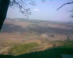 The ČSA mine is located on the site of what was once Lake Komořany, created approximately 15,000 years ago at the end of the Pleistocene era as a shallow flow-through lake fed and drained by the river Bílina.[1] Originally occupying an area of nearly 5,600 ha at the foot of the Ore Mountains and under the gaze of Jezeří Castle, it was the biggest lake in the Kingdom of Bohemia.