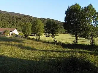 Lompnieu is located near the base of the large valley, with forest mounting on one side, and a plain with larger mountains looming on the other side. On a clear day, the snow-covered Alps can be seen. Lompnieu is around 600 metres in elevation. The climate is rather hot in the summer, attaining into the 1990s, and fairly cold in winter, with several large snow falls.