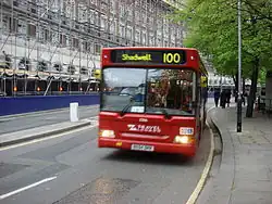 The current route 100 commenced operating on 10 June 1989 from Liverpool Street station to Shadwell via Aldgate, Tower Hill and Wapping.[2][3] It was operated by Leaside Buses' Clapton garage.[3] On 24 February 1990, it was transferred to East London's Bow garage, and again on 26 September 1992 to Stratford.[3]