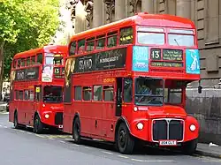 The route was not re-tendered until 2000 as no bids were received for the route. Sovereign was persuaded to put in a bid and when the new contract commenced on 1 September 2001 the route continued largely unchanged. The new mayor Ken Livingstone had been elected on a manifesto that included increasing the number of Routemasters in service in the capital. Route 13 was converted back to Routemaster operation on the change of tender with buses that had been rebuilt by Marshall.[3][5]