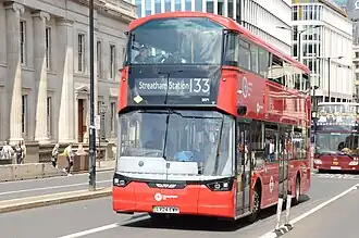 Upon being put out to tender, it was taken over by London General's Stockwell garage on 6 January 1990 with Northern Counties bodied Volvo Citybuses.[3] Upon being re-tendered, route 133 was taken over by Arriva London's Norwood garage on 22 January 2010.[4] When next tendered, it was retained by Arriva London, with it transferred to Brixton garage on 21 January 2017.[5][6]