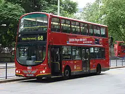 As part of the privatisation of London bus services, in January 1995 route 68 was taken over by Arriva London. Upon being re-tendered, on 1 April 2006 routes 68 passed from Arriva London to London Central with the southern terminus amended from Norwood bus garage to West Norwood station.[9][10] London Central operated it out of Camberwell bus garage.[11] London Central successfully tendered to retain the route, with a further contract commencing in 2011.[12]