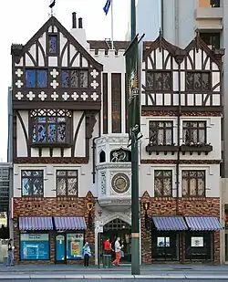 London Court is a four-level mock Tudor open shopping arcade located in the central business district of Perth, Western Australia.[1] It was built in 1937 by wealthy gold financier and businessman Claude de Bernales for residential and commercial purposes. The arcade runs between the Hay Street Mall and St Georges Terrace and is considered an important tourist attraction in the Perth CBD. It received a National Trust of Australia classification in 1978 and was recorded in the Register of the National Estate in 1982.[1] The Heritage Council of Western Australia included it in the State Heritage Register in 1996.[2]