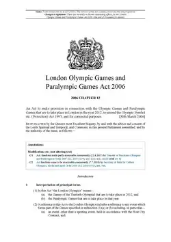 - Text of the London Olympic Games and Paralympic Games Act 2006 as in force today (including any amendments) within the United Kingdom, from legislation.gov.uk.