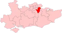 United Kingdom Parliamentary constituencies were redrawn in 1983 and the European constituencies were altered to reflect this. The new seat comprised the following Westminster constituencies: Beckenham, Bexleyheath, Chislehurst, Eltham, Erith and Crayford, Greenwich, Old Bexley and Sidcup, Orpington, Ravensbourne and Woolwich.[2] These boundaries were used in 1984 and 1989.[3] Greenwich was removed for the 1994 European Parliament election.[4]