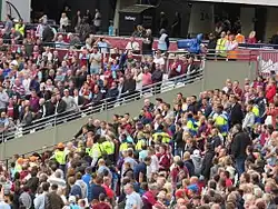 In 2007 Leyton Orient were in discussions to move into the stadium as the plan was still to scale the stadium down and the club were a suitable size to move into it.[107] West Ham's request for the stadium was turned down, despite the club reportedly offering the authorities £100m to reduce the 80,000 seat stadium to 60,000 after the 2012 Games; as it would not be possible deliver the stadium on time and budget for the games due to the number of design changes required by the club. Alternative sites for a new stadium included Thames Ironworks and land next to West Ham station were considered by the club and the London Development Agency (LDA).[108][109] The Olympic board was made up by the government, the mayor of London and the Olympic Delivery Authority and focused on legacy planning for the stadium. In February 2012 former Sports Minister Richard Caborn, who was a member of the board at the time, noted that other board members were keen to begin construction work on the original design and avoid another Wembley-style embarrassment. Caborn further noted that not planning for a genuine dual use stadium such like the Stade de France was a missed opportunity.[110] Talks with football clubs were abandoned in 2007 and not picked up again until 2010.[111]
