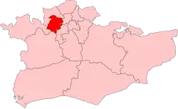 United Kingdom Parliamentary constituencies were redrawn in 1983 and the European constituencies were altered in 1984 to reflect this. The revised seat comprised the following Westminster constituencies: Brentford and Isleworth, Ealing Acton, Ealing North, Ealing Southall, Feltham and Heston, Hammersmith, Richmond and Barnes and Twickenham.[2] The same boundaries were used in 1989 and 1994.[3][4]