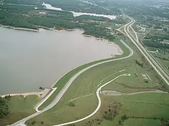 Flooding along the Little Chariton River was an ongoing problem for the residents of Macon County and elsewhere in northeast Missouri since the area was first settled in the 1830s. Extensive channelization of the main Chariton River by private entities, local governments, and the U.S. Army Corps of Engineers, while alleviating flooding issues in some areas, exacerbated them for others.[4] Long Branch Dam was authorized by Congress in 1965 as a multi-purpose project for water supply, flood control, recreation, downstream water quality and fish/wildlife management. Construction began in 1973 and the dam began operating in 1980.[5]