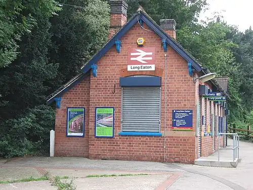 Long Eaton railway station serves the town of Long Eaton in Derbyshire, England. It lies on the Midland Main Line and the Derby-Nottingham line 120 miles 28 chains (193.7 km) north of London St Pancras. The station is managed by East Midlands Railway, but CrossCountry operates some services.