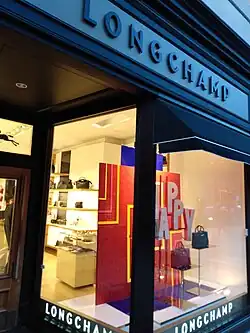 In December 2014, the company opened a larger boutique on the Champs-Élysées in Paris.[13] The store has 500 square meters of retail space split into two levels[13] and is now Longchamp's largest store in Europe.[56] This flagship store houses the brand's entire leatherwear range of accessories for men and women, as well as luggage, women's "ready-to-wear" clothing and shoes. This boutique features a wall of Longchamp's famous Le Pliage handbags[62] and attracts Parisians and tourists from around the world.[56]