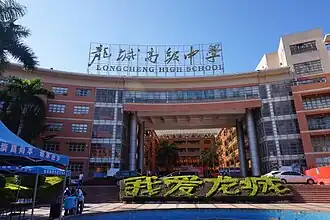 LongCheng High School (Chinese: 龙城高级中学) is a senior high school in Longgang district, Shenzhen. Located in the south of the Qinglingjing Forest Park, it is the largest school in area in Shenzhen.