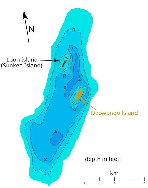 Loon Island is a sunken island on Canadarago Lake in Otsego County, New York, United States, which sank in the early 19th century. Smaller than the remaining Deowongo Island on the lake, the "sunken island" was less than an acre in size. Its southern shore was marshy, but the northern end of the island (toward Richfield Springs) had trees and vegetation.[1]