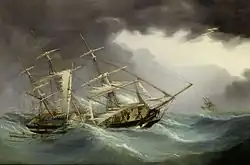 The barque Lord Ashburton was built at Brandy Cove, St. Andrews by Joshua Briggs in 1843. The ship's name honoured Alexander Baring, 1st Baron Ashburton, one of the signatories of the Webster-Ashburton Treaty. The treaty, signed in 1842, had resolved several border issues between the United States and the British North American colonies, including New Brunswick.[1] The captain and original owner was Nehemiah Marks.[2] The ship was registered at St. Andrews in 1843 but was later sold and registration transferred to Liverpool.[3]