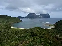 The lagoon is six kilometres long and 1.5 km wide and contains the largest of Lord Howe Island's coral reef system, assessed as having World Heritage values.[10] The main identified threats to the marine environment are the impact of water quality welling up in the lagoon from groundwater, the potential changes of turbidity affecting the clarity of water in the lagoon, the impact from anchor damage (outside as well as inside the lagoon), overfishing particularly of the slower growing fish species which inhabit the drop-off, and dramatic water temperature changes causing coral bleaching and death of other marine species.[10]