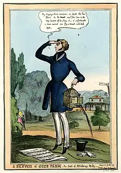 ![]() Satirical print of William Lennox in A sketch of Gee's farm, the seat of blinking Billy, print made by William Heath (published by Thomas McLean, 1830)[1] | |