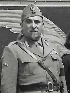 He quickly rose through the ranks of the Voluntary Militia for National Security, becoming console (Colonel) by 1926, when he was transferred to the Forestry Militia and subsequently promoted to console generale (brigadier-general). In 1929 he became federal secretary of the PNF of Ferrara. From July 1935 to August 1939 he served as Prefect of Pescara, and in 1939 he was appointed prefect of the Province of Pola, remaining in office until December 1941. On 5 December 1941 he was appointed commander of the Forestry Militia with the rank of luogotenente generale (Major General).[1][3][4][2]