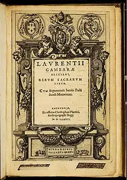 - ^ Laurentii Gambarae Brixiani Rerum sacrarum liber, Biblioteca Nacional de España.