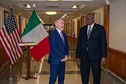 Lorenzo Guerini (born 21 November 1966) is an Italian politician and member of the Democratic Party (PD). Guerini has been serving as the Italian Minister of Defence in the cabinets of successive prime ministers Giuseppe Conte and Mario Draghi from 2019 to 2022.[1] In March 2014, he was chosen by party leader Matteo Renzi to be deputy secretary of the PD along with Debora Serracchiani, a position that he held until May 2017. From 2005 to 2012, he served as mayor of Lodi, Lombardy, his hometown.[2]