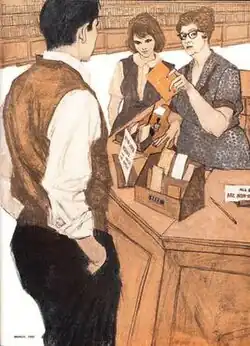 In 1951, she married D'Andrea in New York.[2] That year,[5] she also joined the Charles E. Cooper studio with a collection of illustrators, including D'Andrea, Coby Whitmore, and Jon Whitcomb.[2] According to The New School, it was "one of the most influential studios for photography and commercial art" at the time.[5] Fox, one of the most notable female illustrators of the mid-20th century,[5] illustrated books, book covers, advertisements, and she continued to illustrate for magazines, such as Good Housekeeping, Redbook, McCall's, and Cosmopolitan.[2][5] Women illustrators were often hired to create illustrations of children, who were portrayed as innocent and wholesome, or as naughty, like Fox's dark, young Sherlock made in the 1960s.[6] As magazines relied increasingly on photography to fill their pages, it became difficult to remain competitive as an illustrator into the 1960s, but Fox was one of the artists, like Bernard Fuchs and Austin Briggs, to create their own new and unique style.[7]