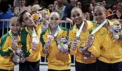 - ^ Pereira, Guilherme; Dillon, Lorena; Romera, Rogerio (4 October 2023). "Brasil conquista prata inédita por equipes no Mundial de ginástica" [Brazil wins first silver medal in team gymnastics world championships]. ge (in Portuguese). Retrieved 5 July 2024.