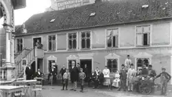 The property Haabet (The Hope, now No. 7) was on 31 March 1804 purchased by Lars Mathiesen from steward at Frederiksberg Palace Marcus Friederich Voigt. On 27 February that same year he had been granted a royal license to open a guesthouse and beer garden at the site. Mathiesen ran the establishment for 50 years. It attracted a wide range of common and more cultivated guests and was a particularly popular venue for both large and small student gatherings. Mathiesen was a jovial and popular character who as he grew old was almost seen as the uncrowned king of Frederiksberg. His literary acquaintances comprised Knud Lyhne Rahbek and Adam Oehlenschläger. In 1829, Oehlenschläger even rented a summer residence in Haabet's backyard.[1]