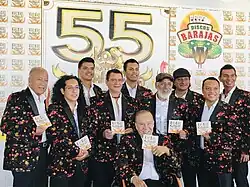 Los Flamers are a Mexican Cumbia band, formed in the mid-1960s by Roberto Eugenio Bueno Campos.[1] They are known for their hits such as "El Chicle", "El Tizón","Juana La Cubana", "Atol de Elote", "Juana La Bailadora", "Viva El Amor", "Mira Mira Mira", "Flamazo Navideño" and "Camarón Pelao".[1] Members of the group include Roberto Bueno, Armando Vazquez, Paco Valerio, Fernando Lopez, Manny Dominguez, Salvador Iglesias, Jose Pacheco, Yoc Pacheco, Sammy Sánchez and David Roman.