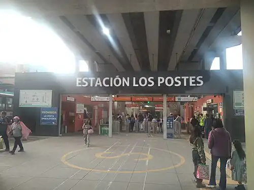 Los Postes is a Lima and Callao Metro station on Line 1. The station is located between Los Jardines and San Carlos. It was opened on 3 January 2012 as part of the extension of the line from Miguel Grau to Bayóvar.[1][2]