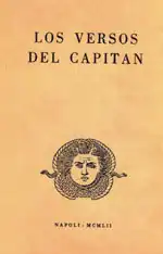 Los versos del capitán is a book by the Chilean poet Pablo Neruda, winner of the Nobel Prize in Literature in 1971. It was published for the first time anonymously in Italy in 1952 by his friend Paolo Ricci.[1][2] The book with his own name in it was first published in Chile, in 1963, with a note written by Neruda explaining why he used anonymity.[3] It is considered that "Los versos del capitan" were dedicated to Neruda's lover Matilde Urrutia, whom he married a few years later.[4]