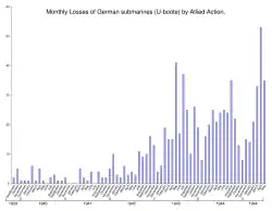The following is a table of Allied shipping losses in the Battle of the Atlantic during World War II. All shipping losses are in Gross Registered Tonnage (GRT).