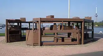 Sculpture Lost Luggage Depot (2001) by the Canadian artist Jeff Wall, Wilhelminakade, Rotterdam