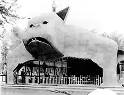 During this time, John Ringling sold Lotus Isle a temperamental bull elephant named "Tusko" who soon destroyed several pavilions after being spooked by a low-flying stunt plane.[16] The elephant, which had previously rampaged through Sedro-Woolley, Washington, eventually ended up in Seattle's Woodland Park Zoo.[5][17]