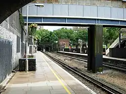 The road was laid out in the 1840s and 1850s, and takes its name from the Scottish landscape gardener John Claudius Loudon.[1] Initially only the southern section was named Loudon Street with the northern stretch known as Bridge Road after the road bridge carrying it across West Coast Main Line. By 1878 the whole street was known by the name and when a new railway station opened that year it was named after the street. Located at the entrance to the lengthy Primrose Hill Tunnel, it was known as Loudoun Road until its renaming as South Hampstead station in 1922.[2]