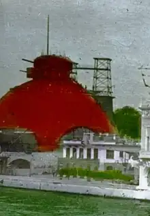 The success of Bing's shop led to further commissions.[5] He designed a globe based on the concept of the anarchist geographer Élisée Reclus for the Paris Exposition Universelle (1900). This was not built. He also designed the impressive Schneider Pavilion on the Quai Branly for the exposition.[4] Schneider was the main supplier of guns and armaments, and Bonnier designed a red building situated on the bank of the Seine that resembled a huge gun turret or battery. The pavilion gained widespread press attention and consolidated Bonnier's reputation as an architect capable of innovative solutions to unusual challenges.[7]